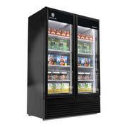 - Double Glass Doors: Two self-closing, double-pane glass doors ensure energy efficiency while providing a clear view of the contents.